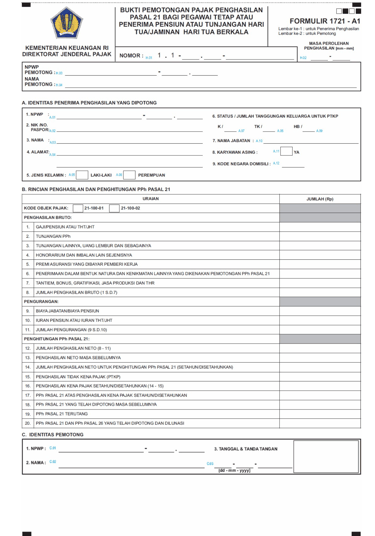 Bupot 1721-A1 adalah bukti pemotongan pajak yang dibuat oleh pemberi kerja untuk karyawan. Bupot 1721-A1 ini ditujukan untuk :