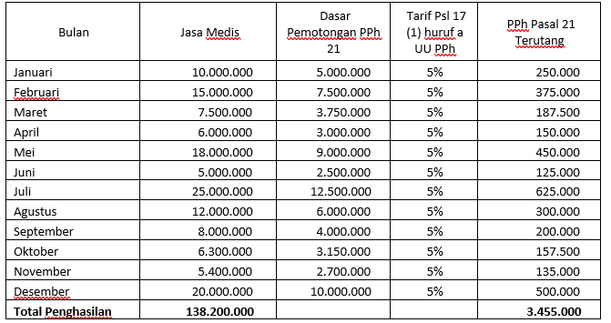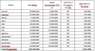 - Andi juga memberikan jasa medisnya pada Poli Mata di Rumah Sakit Tsu Chi dengan penghasilan bruto dan pemotongan PPh 21 sebagai berikut :
