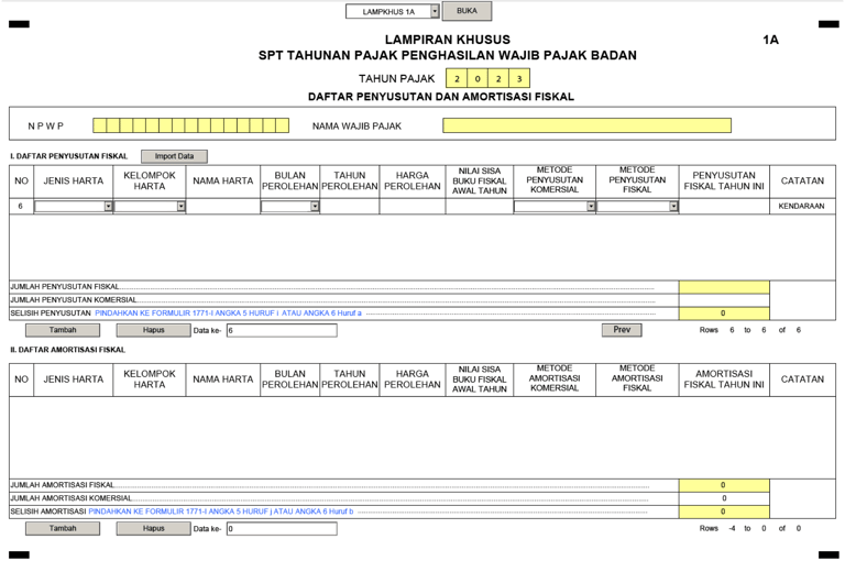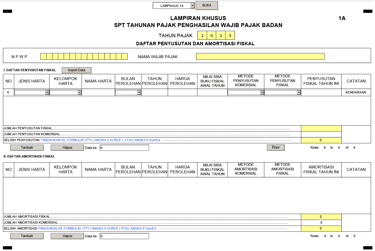 Lampiran khusus 1A dibagi menjadi 2 yaitu penyusutan fiskal dan amortisasi fiskal.