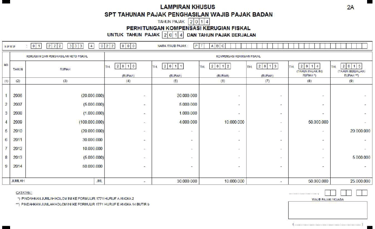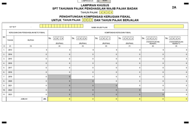 Lampiran Khusus 2A Pada SPT Tahunan Badan 1771 – Perhitungan Kompensasi Kerugian Fiskal