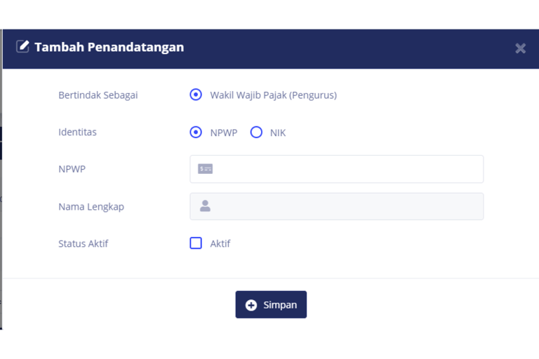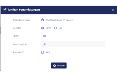 Isi sesuai dengan Data Penandatangan yang akan di simpan lalu klik Simpan