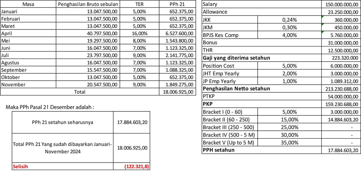 Dengan demikian, besaran PPh Pasal 21 Tuan V dari Januari-Desember 2024 adalah :